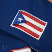 WEARER’S RIGHT: The wearer’s right of the Puerto Rico 2023 World Baseball Classic Grey Bottom Blue 59Fifty Fitted Cap features the Puerto Rico Flag.