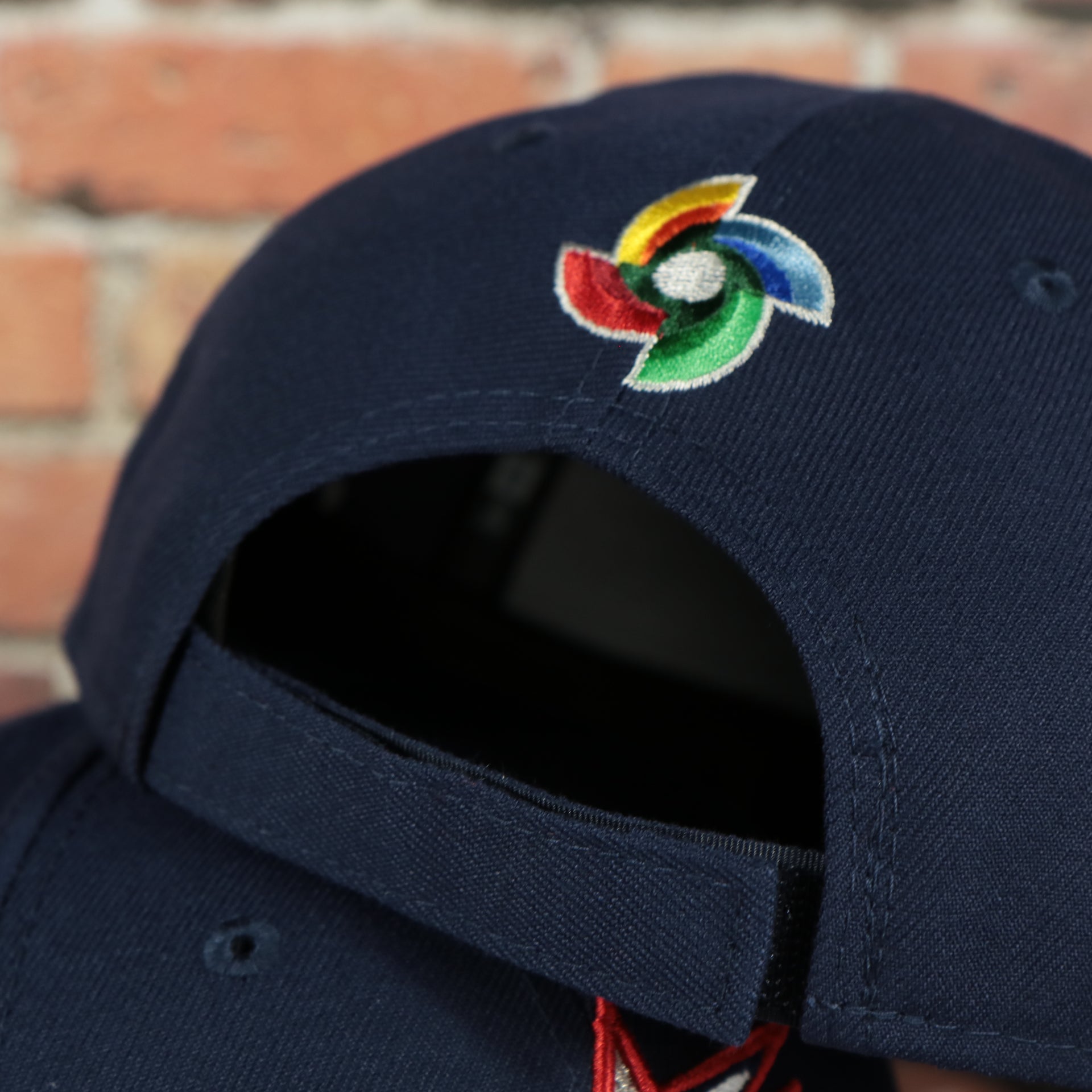 BACK: The back of the United States 2023 World Baseball Classic Grey Bottom Navy 9Forty Dad Hat has the flat World Baseball Classic logo.