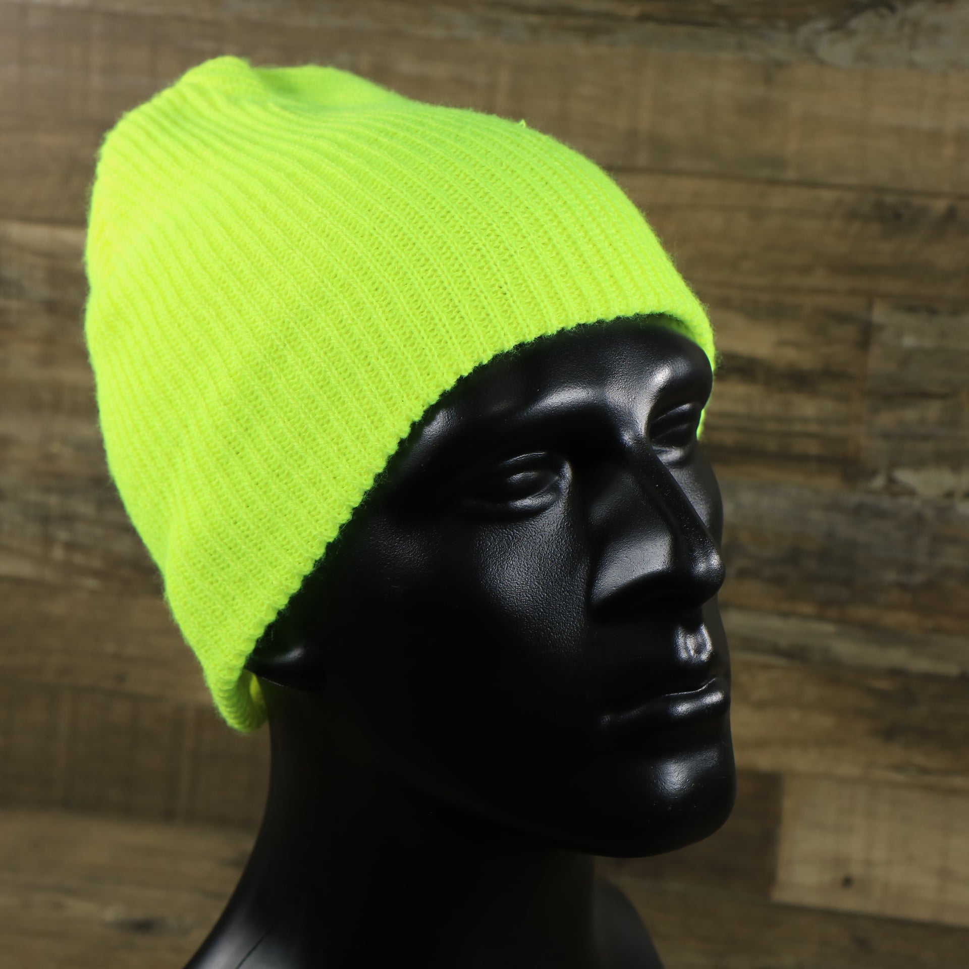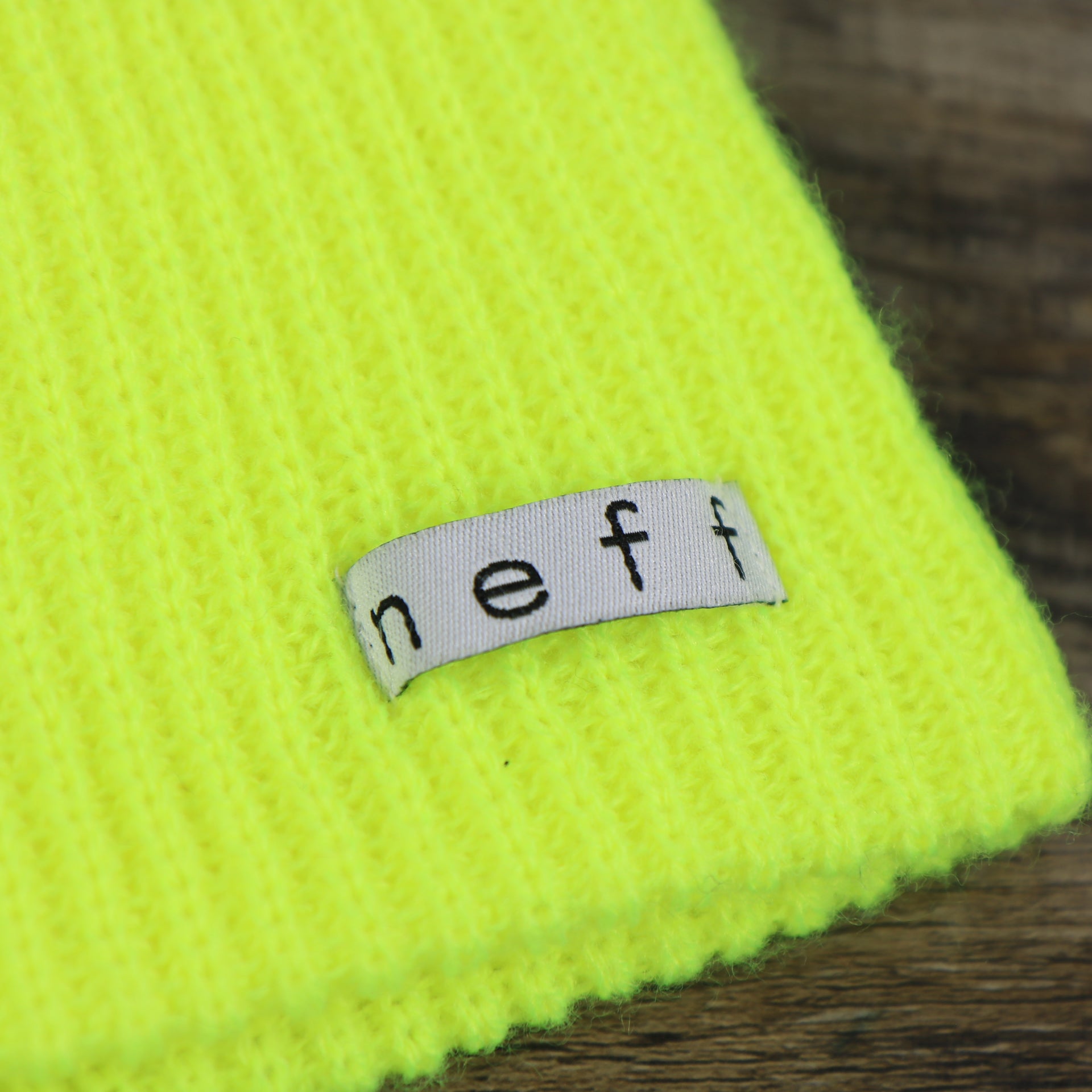 Create the ultimate streetwear and skate-inspired outfit with a classic Neff Daily Beanie. The Neff Daily Beanie has become a staple for many fashionable individuals because of the variety of colors that the Neff Daily Beanie comes in, it's versatility in fitting a variety of individuals, and it's comfortable soft material. This Neff Daily Beanie is no exception. The Neon Green Neff Daily Beanie is a neon green color and is made up of elastic, comfortable knit thread. On the front of the Neon Green Neff Daily Beanie is a white tag that says "n e f f" on it in black letters. The rest of the Neon Green Neff Beanie is relatively plain featuring only the neon green color of the hat itself. Represent the Neff brand while standing out with a classic Neff Daily Beanie in neon green.