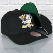 BACK: The back of the Anaheim Ducks NHL Team 2 Ground 2.0 Pro Green bottom | Black Snapback Hat has the Mitchell and Ness logo.
