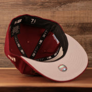 Underbrim: This maroon Phillies all over embroidered patch fitted 5950 hat has a grey bottom which looks super stylish with the Philadelphia Phillies white throwback logo on the front side.
