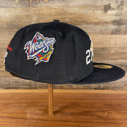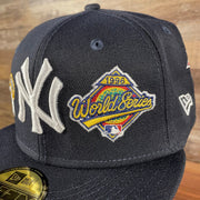 WEARER’S RIGHT: On the wearer’s right side of this Grey Bottom Navy Yankees Series Side Patch Fitted is the 1999 World Series Logo.
