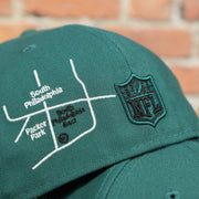 BACK - The back of this 59Fifty gray bottom side patch Eagles fitted cap is where it really shines. The back left panel features a large transit map of Philadelphia with South Philadelphia East highlighted in black embroidery. Of course as always, we have the NFL logo embroidered on the center of the NFL side patch fitted.