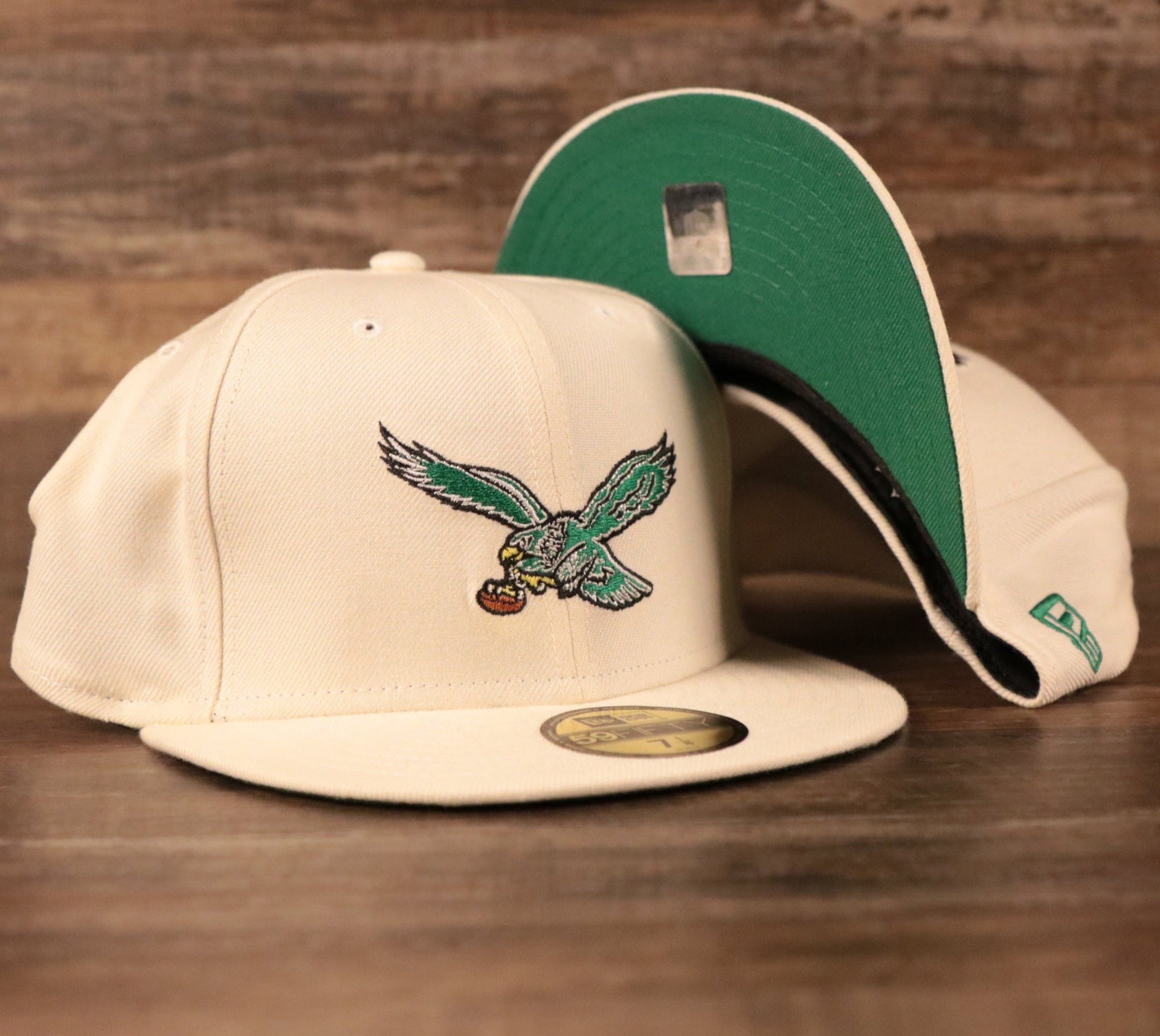 Philadelphia Eagles Retro Logo 59fifty Kelly Green Brim Fitted Cap | Throwback Eagles Kelly Green Bottom 59Fifty Fitted