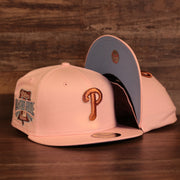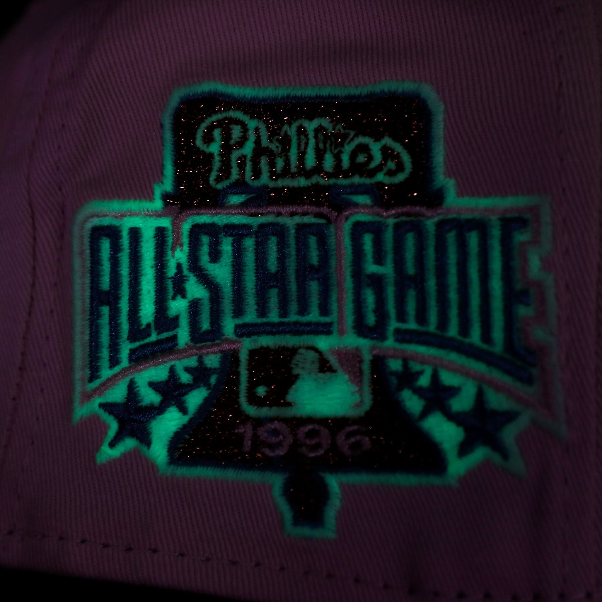 Show love for the Philadelphia Phillies with this exclusive collab between Cap Swag and New Era that we're calling "il napoletano" because of the colorway inspiration from neopolitan ice cream. This custom side patch fitted cap is an exclusive fitted hat from New Era that comes in a unique colorway that you wont see anywhere else. The Philadelphia Phillies Glow In The Dark 1996 All Star Game "il napoletano" Sky Blue Bottom Side Patch 59Fifty Fitted Cap features a solid pink construction and glow in the dark accents with metallic copper thread embroidery, giving this fitted cap a premium feel. Without a doubt this Philadelphia Phillies Glow In The Dark 1996 All Star Game "il napoletano" Sky Blue Bottom Side Patch 59Fifty Fitted Cap is something that you wont see often, if ever again, so get in on this exclusive side patch fitted before it sells out. Some of the details of this Philadelphia Phillies Glow In The Dark 1996 All Star Game "il napoletano" Sky Blue Bottom Side Patch 59Fifty Fitted Cap include: