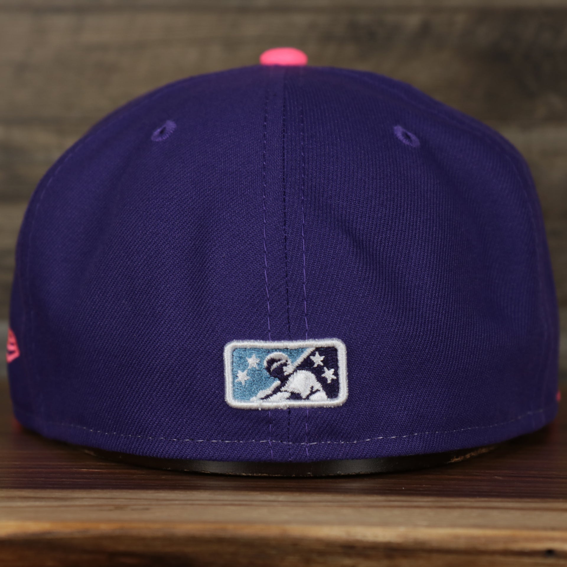 UNDER VISOR: As with all Black bottom fitted caps, this Jersey Shore Blue Claws 2022 Medusas de Jersey Shore Copa de la Diversion On-Field Black Bottom 5950 Fitted Cap | Purple/White has a black under visor that perfectly ties into the Purple, Pink and White colorway of the crown and brim. You can also find the classic black sweatband and taping on the inside of this Jersey Shore Fitted Cap.