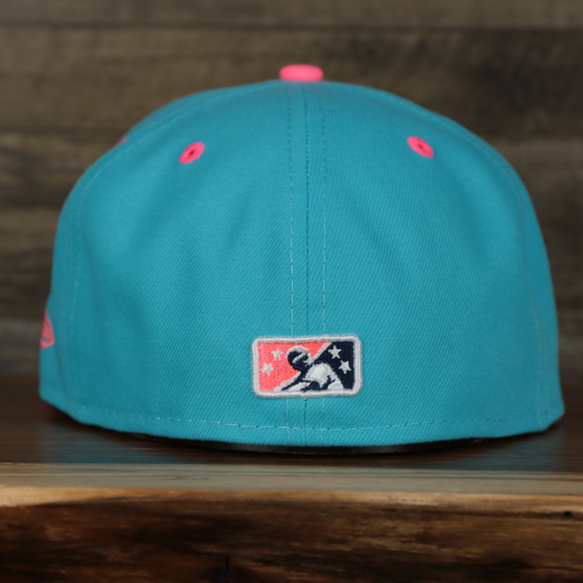 BACK: The back of the Ironpigs Heritage Hat features the Milb Batterman logo embroidered in Pink, Blue, and White.