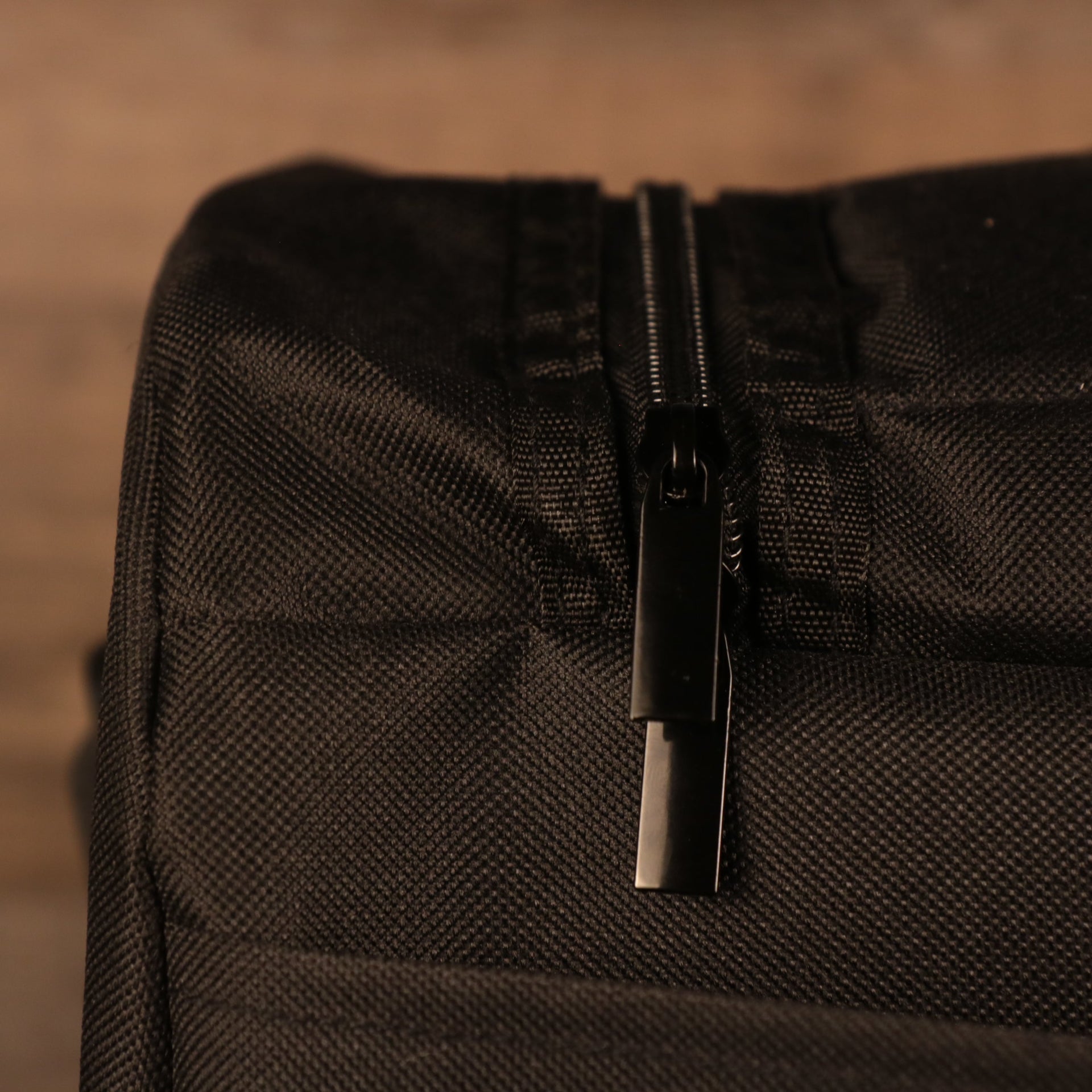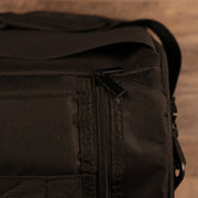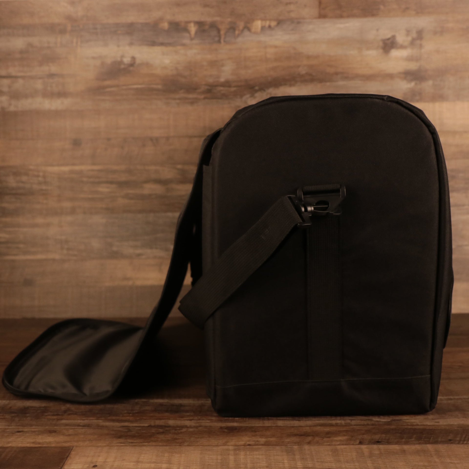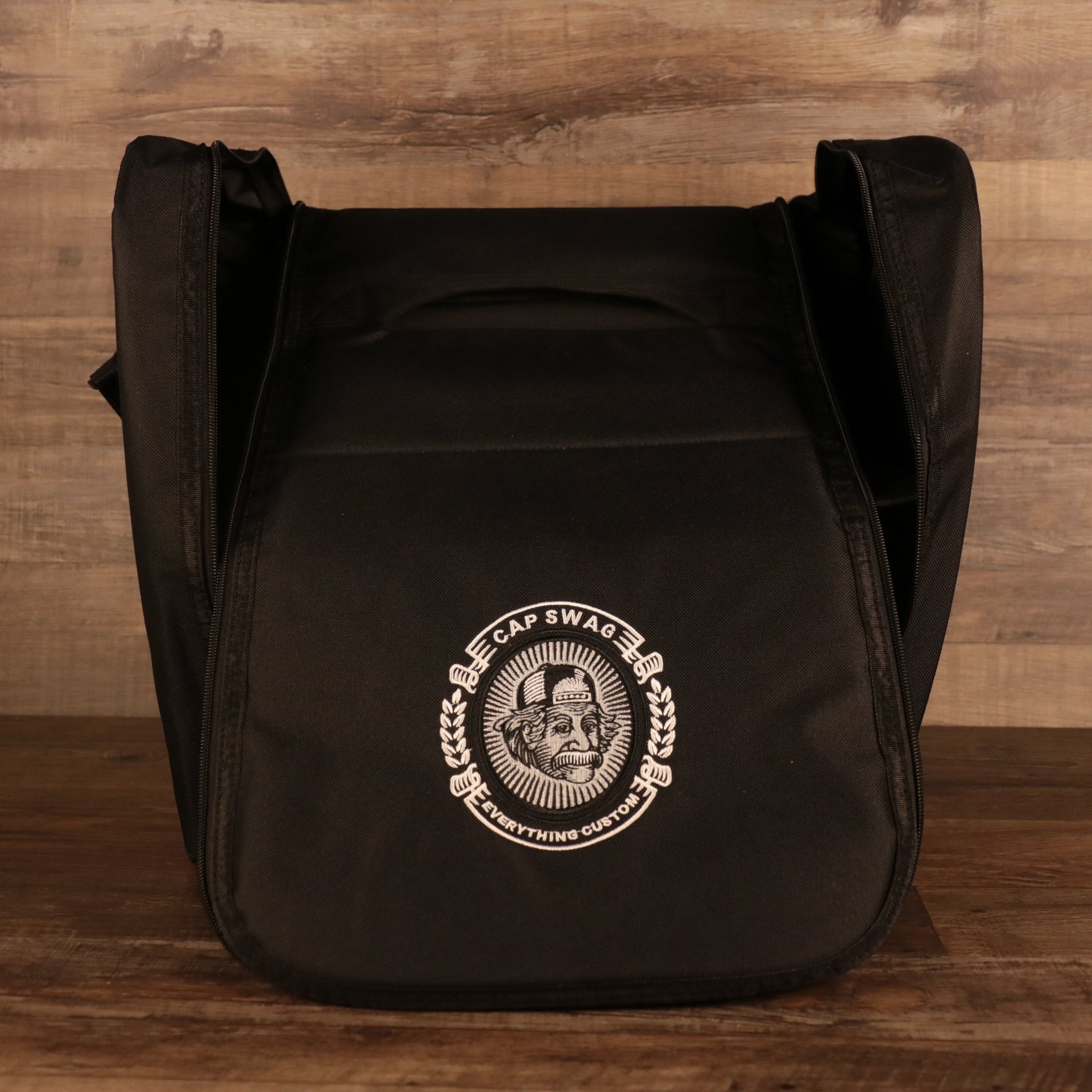 This fitted cap carrier is a hat carrier 24 hats can seamlessly fit into, whether they're basic unstructured baseball caps or structured 59fifty fitted caps. This portable hat case for travel, is the travel cap carrier you need in your life if you're planning going on vacation and want to be rocking your freshest fitted. This large hat travel case is big enough to fit 24 hats and is designed to protect your hats thanks to the added padding and sturdy design. This fitted hat case or travel hat carrier, as we like to all it, features a double-decker storage compartment and an easy access double zipper front storage pocket. On the back of the hat carrier 24 pack, there is an open pocket that allows you to slide your hat travel bag on top of the rails of your rolling luggage.