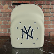 FRONT: The front of the New York Yankees Cap Carrier | White Hat Carrier features the New York Yankees Logo Printed in Navy Blue with Multiple Eyelets for Ventilation to keep your caps fresh.