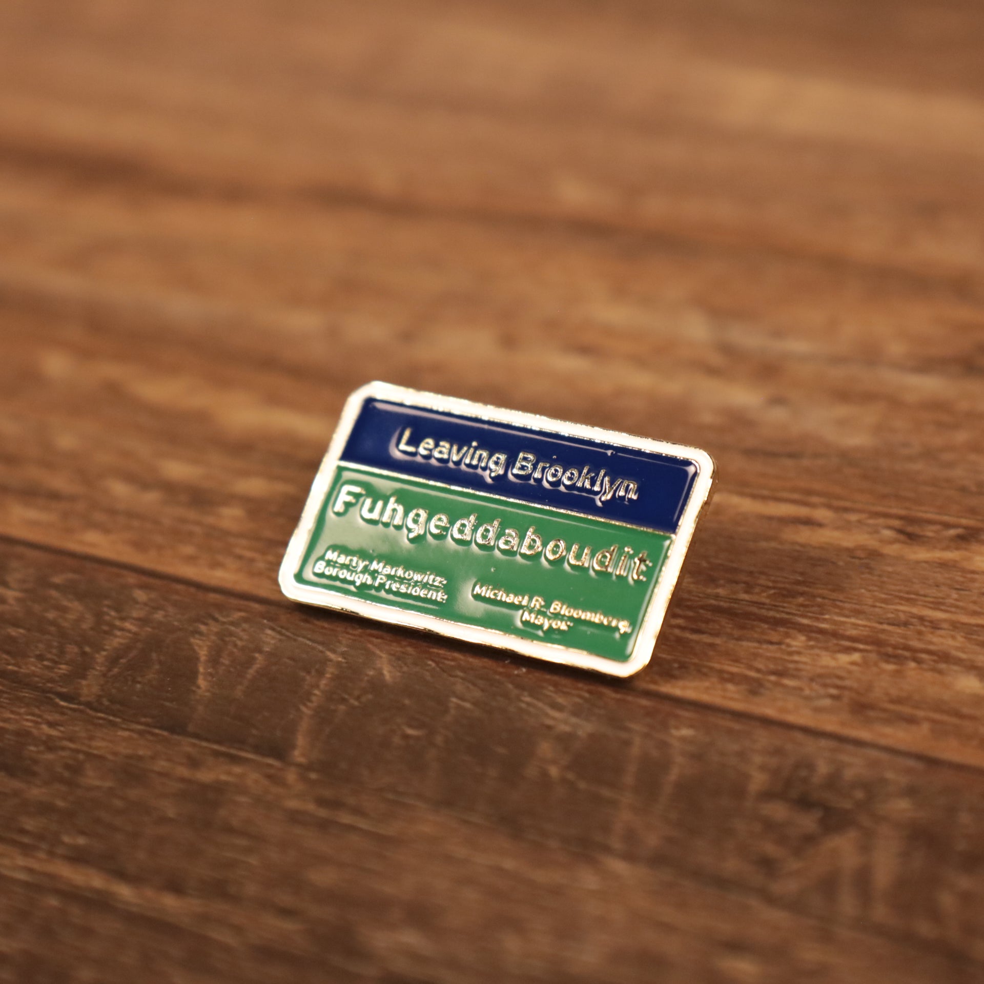New York Leaving Brooklyn Fugeddaboudit Sign Fitted Cap Pin | Enamel Pin For Hat