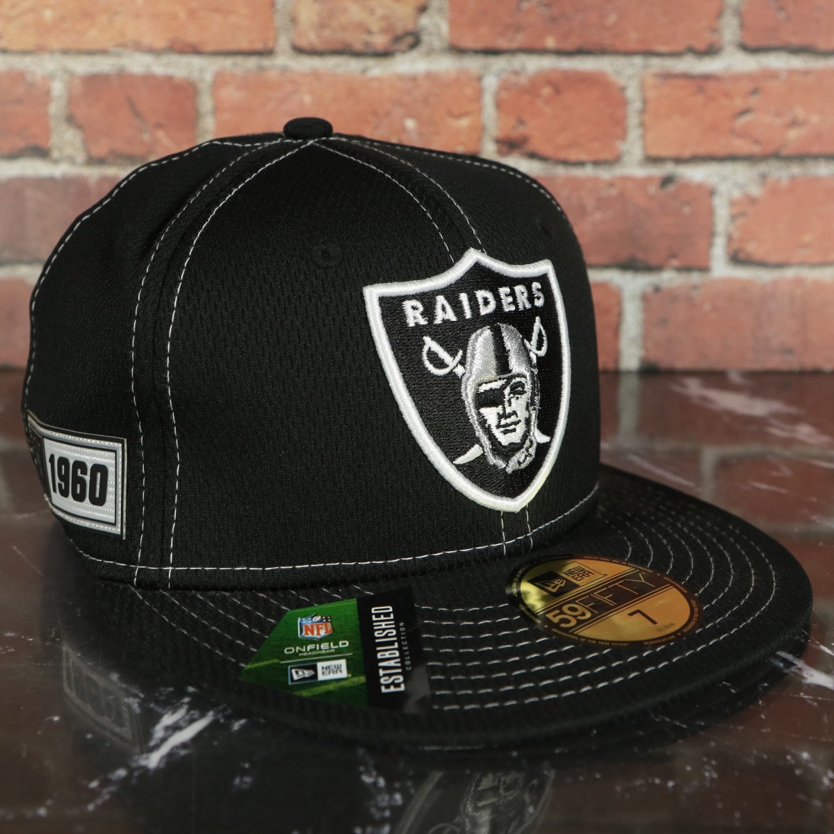 Oakland Raiders New Era 2019 NFL On Field Sideline Road Official 59FIFTY Black Fitted Hat