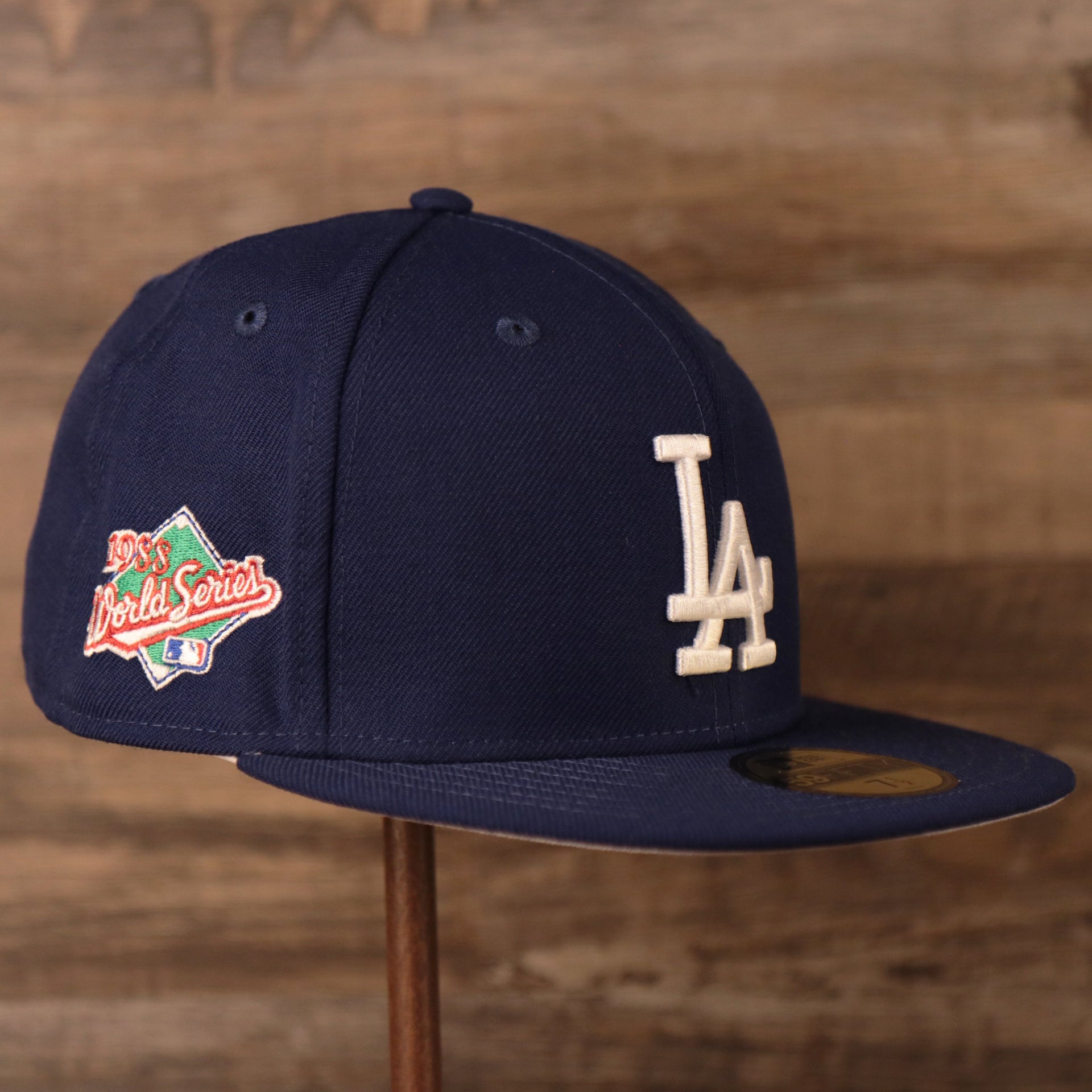 Shop the Los Angeles Dodgers 1988 World Series Side Patch Grey Bottom Fitted Cap to rock the ultimate vintage Dodgers headwear while showing love for the Dodgers as they take on the MLB. Represent the Los Angles Dodgers and the city of Los Angeles today with this Royal Blue Los Angeles Dodgers 1988 World Series SidePatch Gray Bottom Fitted Cap. The Dodgers 1988 World Series Side Patch Grey Under Brim Fitted Hat has a high structured royal blue crown, a flat royal blue brim, a white button, and a grey under brim. The Dodgers 1988 World Series SidePatch Gray Underside Fitted Cap is perfect for any LA fan that wants to represent the city of Angles in style. On the front of the Los Angeles Dodgers 1988 World Series Side Patch Grey Bottom Fitted Hat is the classic Dodgers logo embroidered in white. On the left side of the Dodgers 1988 World Series Side Patch Fitted Cap is the 1988 World Series Patch embroidered in light blue, white, green, and white. Show love for the Dodgers today with a royal blue 1988 World Series Los Angeles Dodgers Gray Bottom World Series Side PatchFitted Cap.