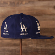 2) RIGHT SIDE: The right side of this retro blue New Era Dodgers side patch 59fifty has the logo of the team used in 1958 - 1971 and the more recent one used in 1971 - 2011. These were two of the most cool logos of the team and their design makes this vintage cap even more lit.