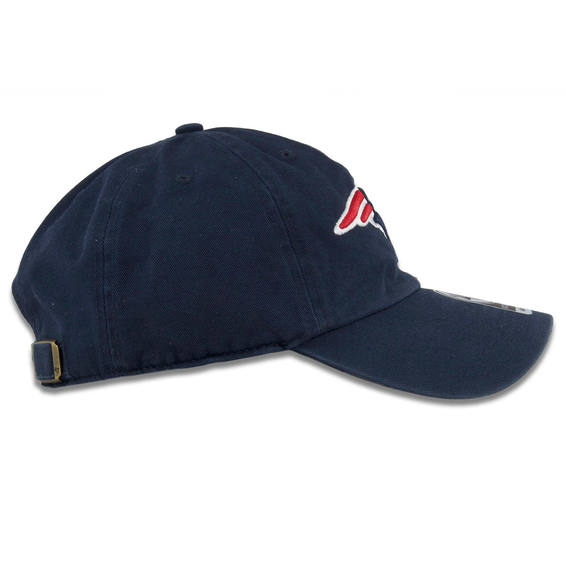 Represent the New England Patriots this season with the '47 brand navy blue Patriots clean up dad hat. This New England Patriots baseball cap is great for any Pats fan that wants an essential Patriots cap in their collection. This New England Patriots navy blue baseball cap features the Patriots logo embroidered on the front with the '47 brand logo embroidered on the left side and an adjustable strap on the back.