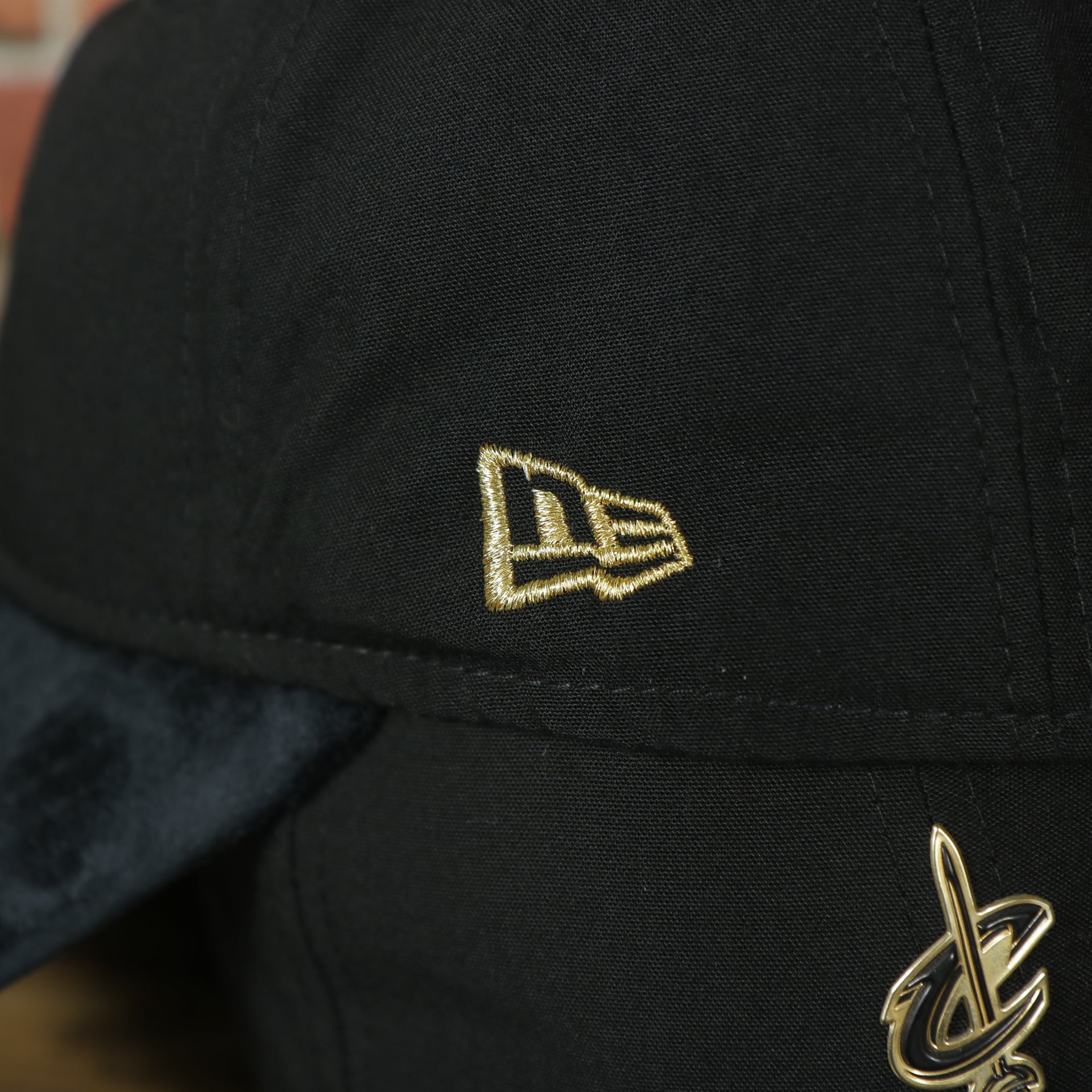 Shop the Cleveland Cavaliers 2017 On-Court dad hat. The 2017 Cleveland Cavaliers NBA On-Court dad hat is the official 920 New Era dad hat worn by NBA players both on and off the court. This premium Cleveland Cavaliers dad hat is a luxury 2017 NBA On-Court dad hat that New Era designed specifically for players and fans. The Cleveland Cavaliers 2017 On-Court dad hat has a black crown, and black bent brim. The brim of the Cleveland Cavaliers 2017 On-Court dad hat is suede. On the front of the black 920 New Era NBA Cleveland Cavaliers On-Court dad hat is the Cleveland Cavaliers logo in metallic gold. On the left side of the Cleveland Cavaliers On-Court dad hat is the New Era logo embroidered in gold. On the back of the Cleveland Cavaliers On-Court 9twenty New Era dad hat is the reflective adjustable strap. The under brim of the Cleveland Cavaliers 920 New Era On-Court dad hat is black.