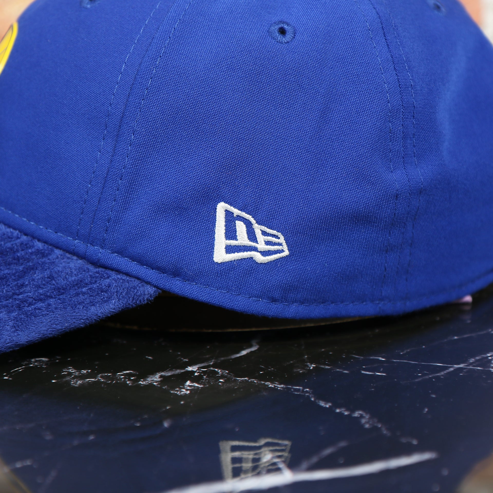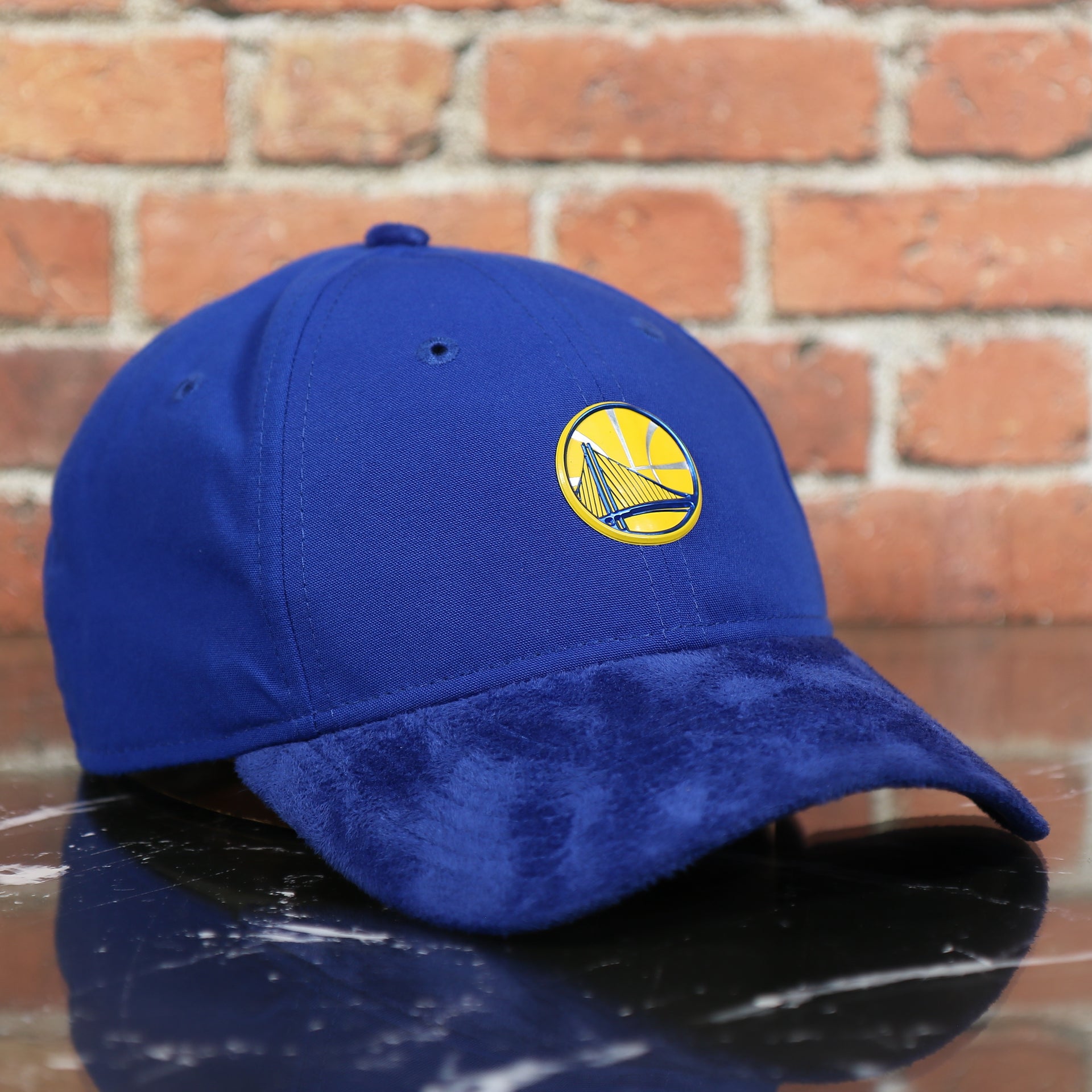 UNDERVISOR: The Royal Blue Adjustable NBA Warriors Suede Dad Hat features a Suede Blue Undervisor.