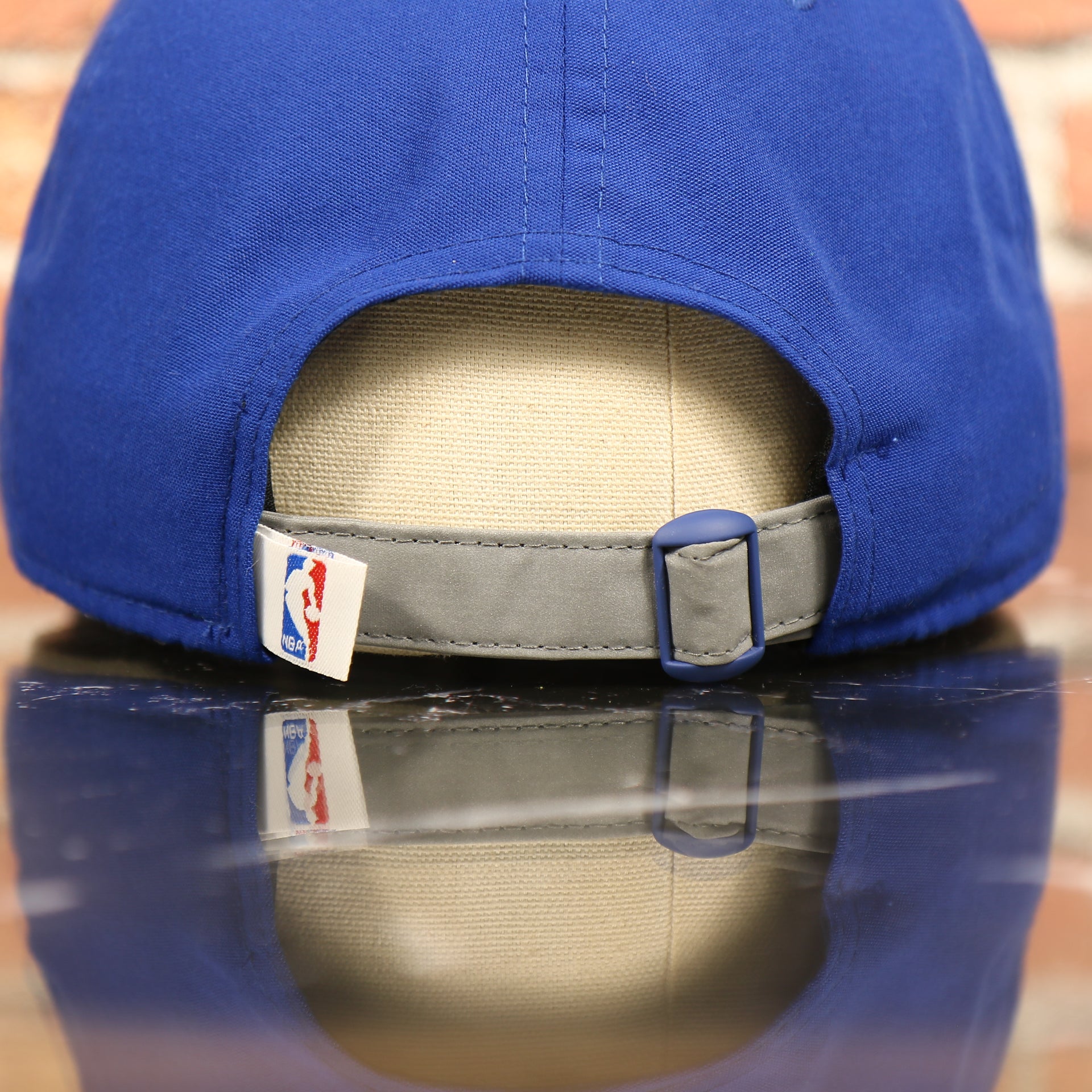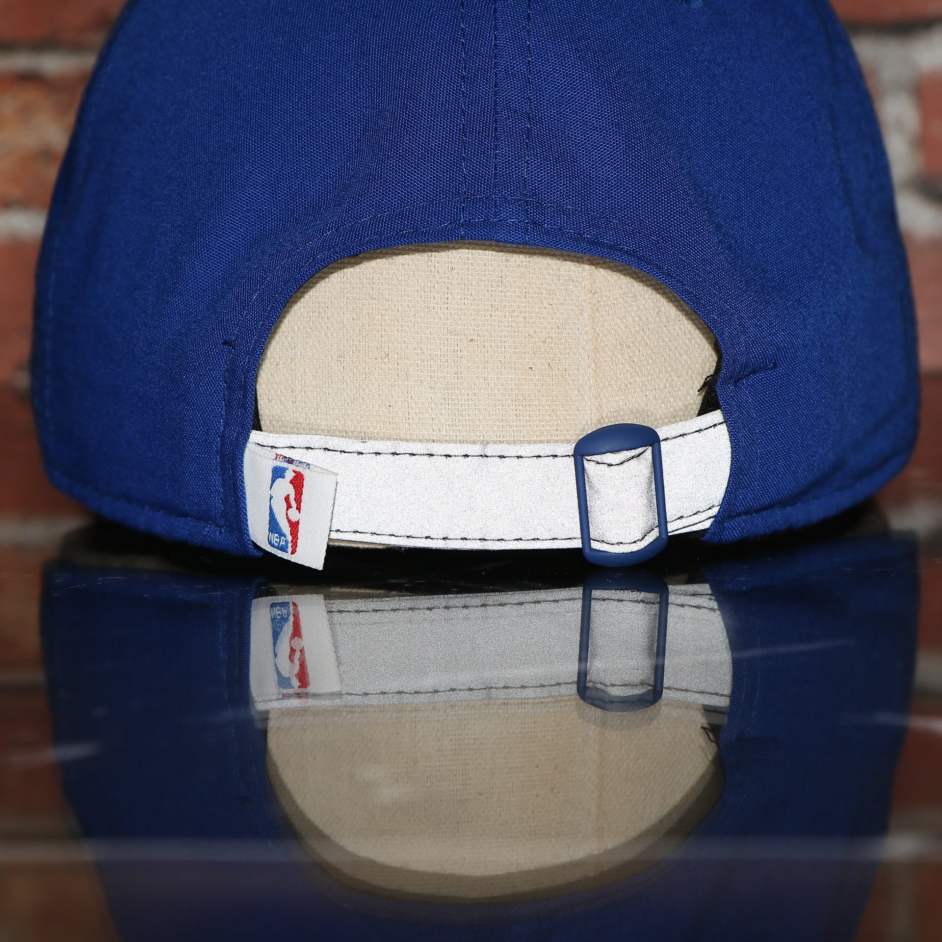 BACKSIDE: The backside of the Golden State Warriors NBA Draft Dad hat is a reflective adjustable strap.