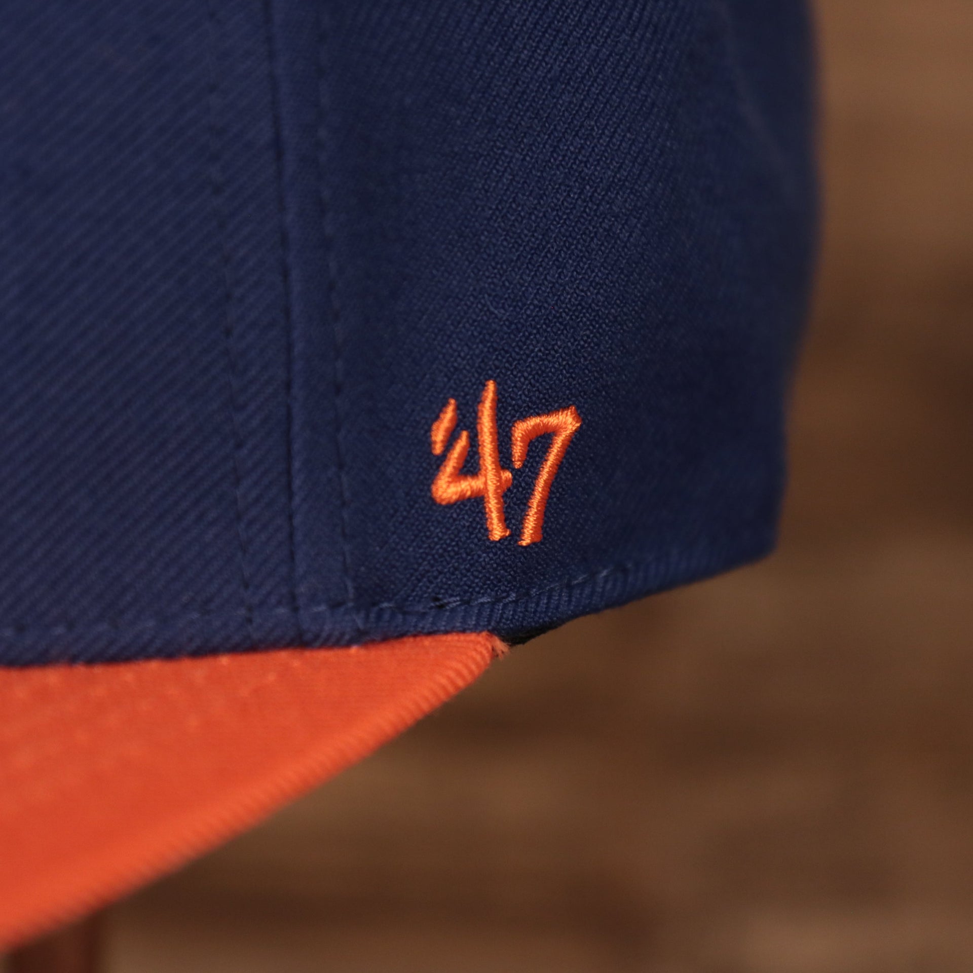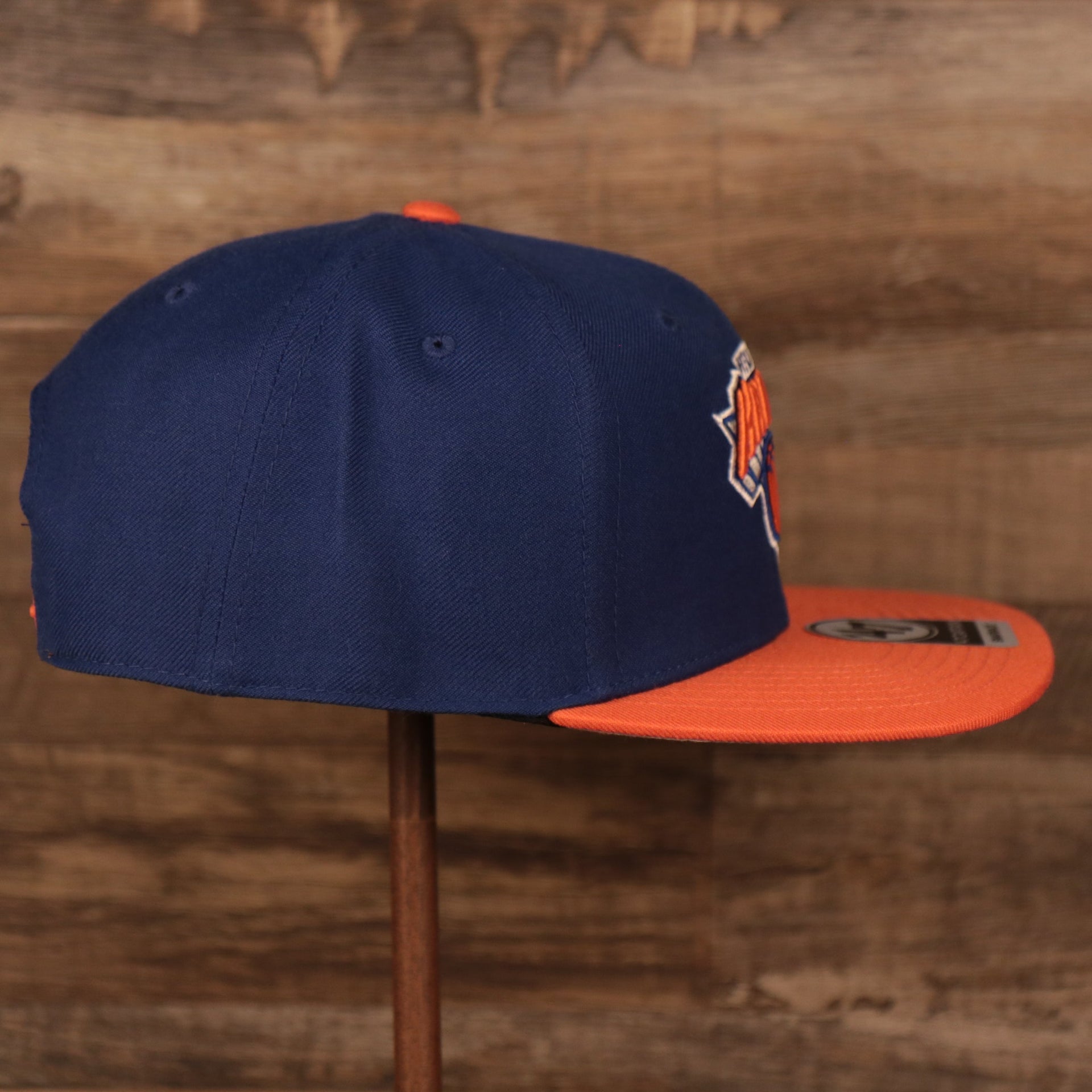 WEARER'S LEFT: The wearer's left on this Knicks Adjustable Snap Hat is just the classic Blue Knicks color with the 47 Brand logo embroidered in Orange.