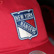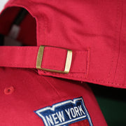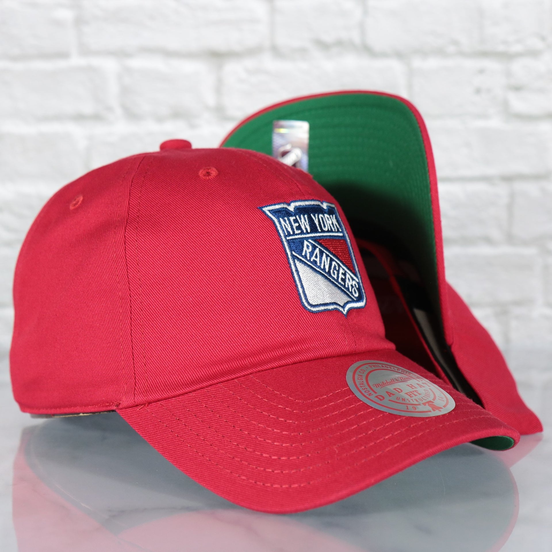 BACK: The back of the New York Rangers NHL Team 2 Ground 2.0 Green bottom | Red Dad Hat has the Mitchell and Ness logo.