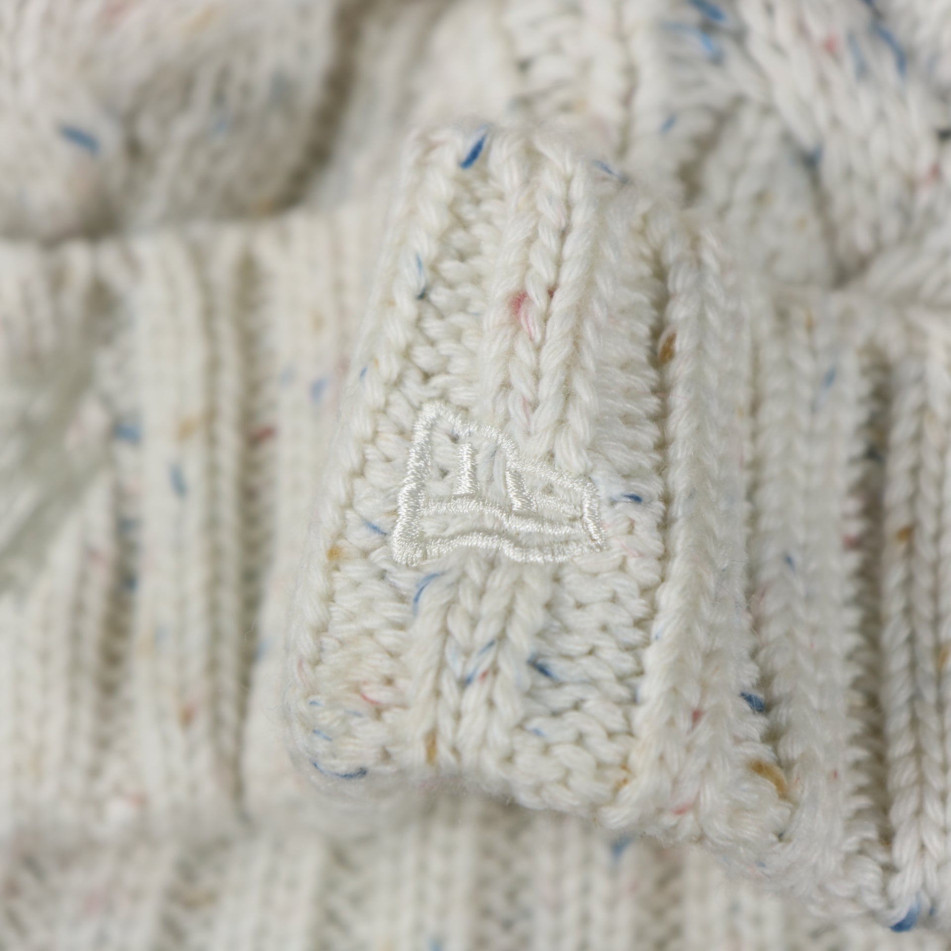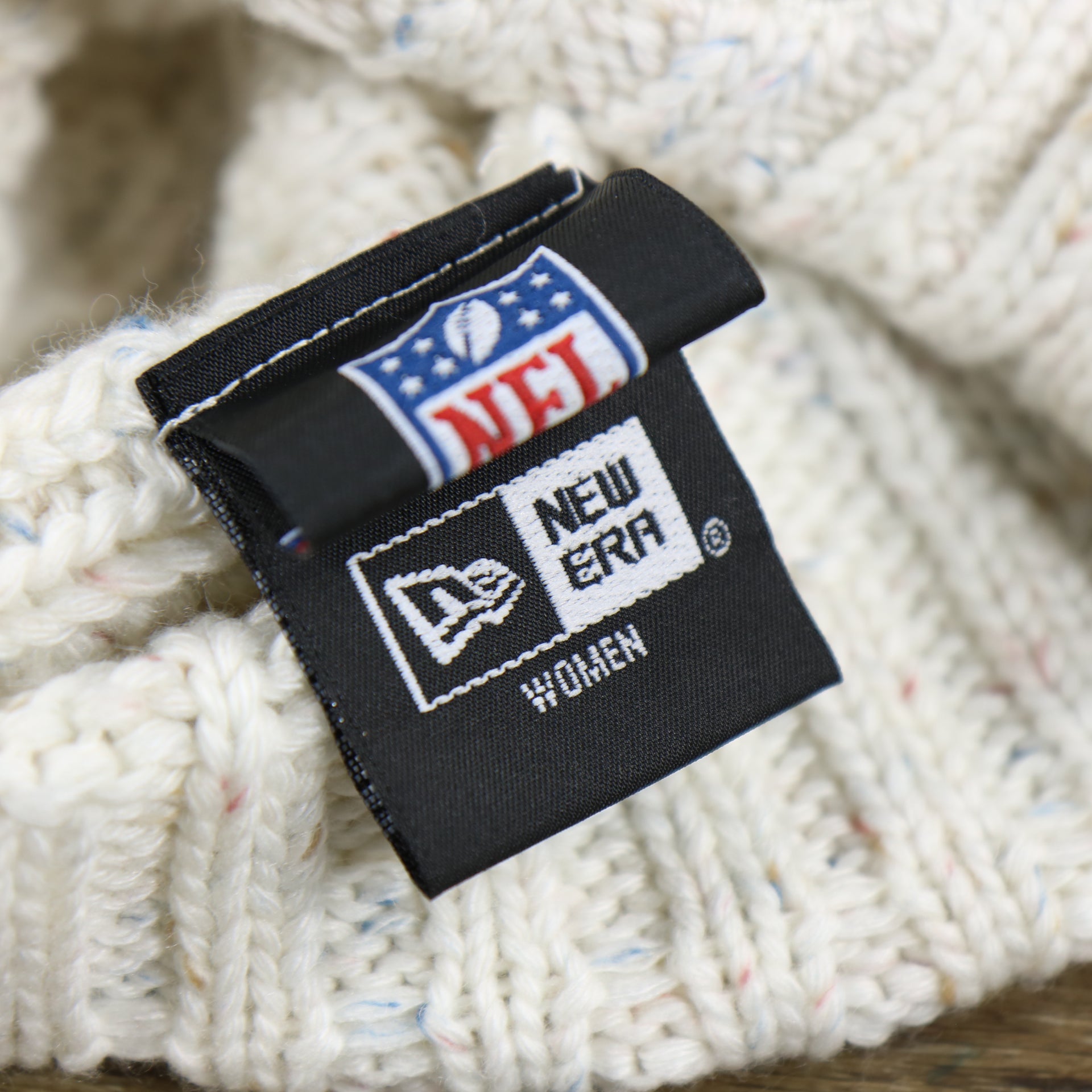 WEARER’S LEFT: The wearer’s left of the Confetti Print Winter NFL Women’s Beanie features the New Era Logo Embroidered in White.