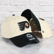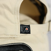 WEARER'S RIGHT: The wearer's right of this Philadelphia Flyers Natural Unstructured Crown Black Curved Brim Adjustable Dad Hat is plain Cream.