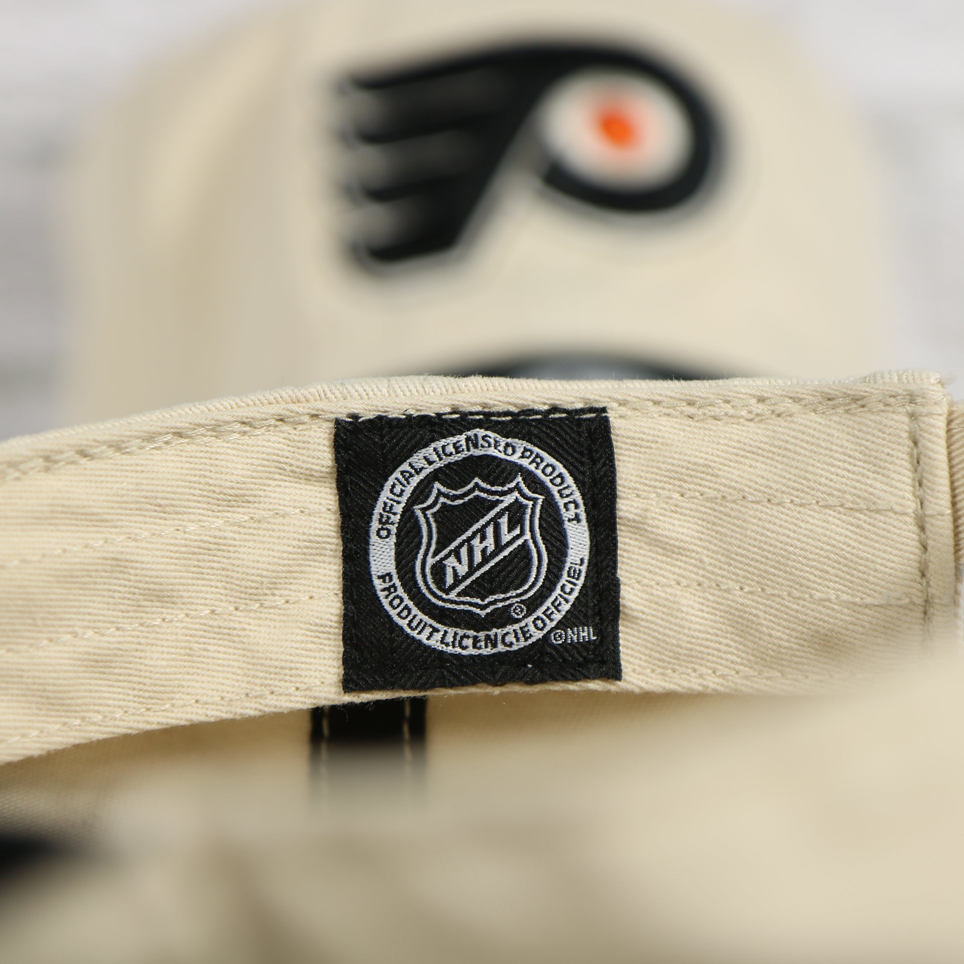 UNDER VISOR: As with all black bottom Dad Hats, this Philadelphia Flyers Natural Unstructured Crown Black Curved Brim Adjustable Dad Hat has a black under visor that perfectly ties into the Cream colorway of the crown and Black brim. You can also find the classic black sweatband and taping on the inside of this Cream Flyers Dad Cap.