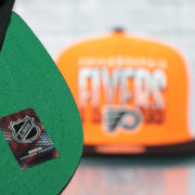 UNDER VISOR: The under visor of the Philadelphia Flyers NHL Billboard 2 Green bottom Tri-Tone | Orange/White/Black Snapback Hat is green.