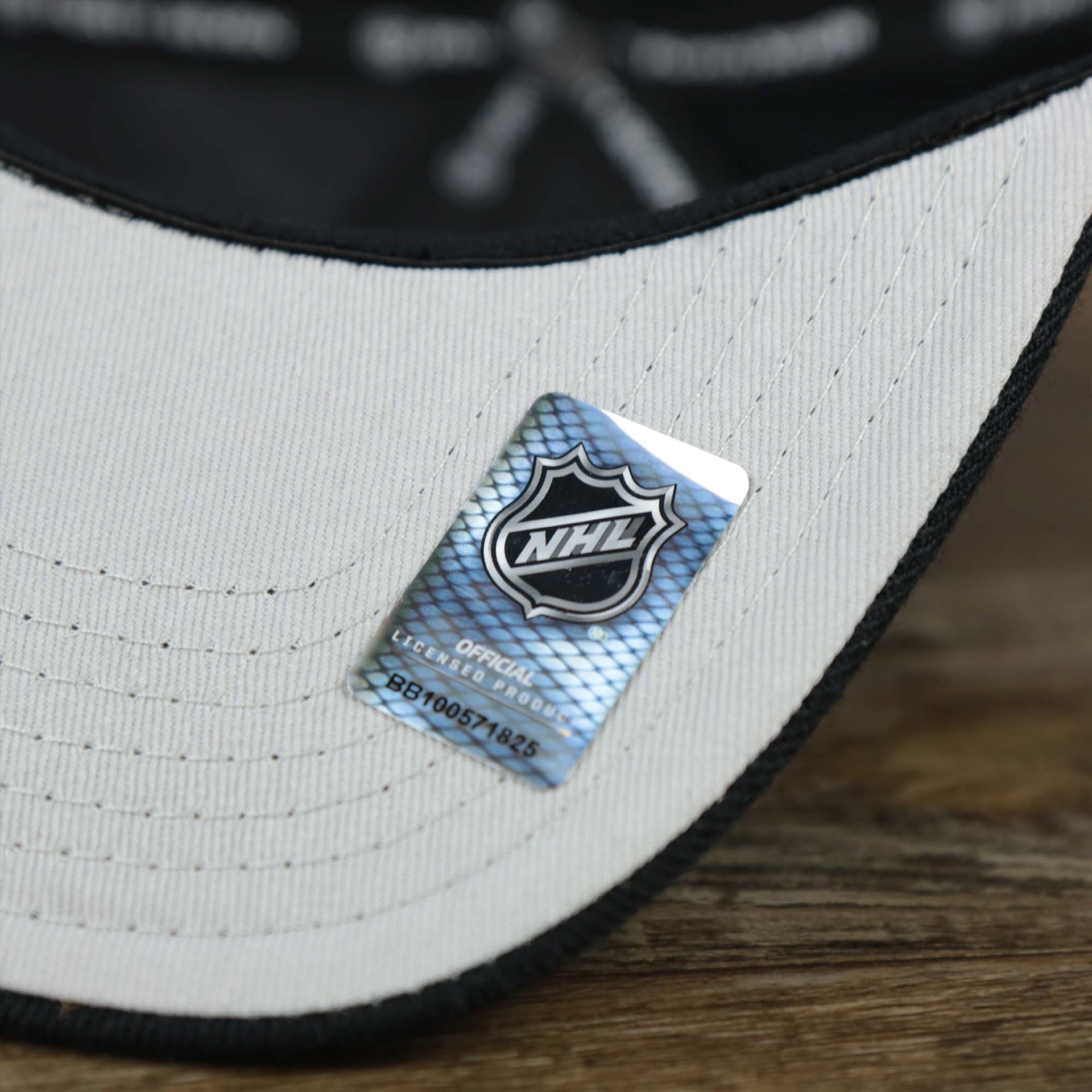 BACKSIDE: The backside of the Exclusive Fitted Flyers Cap with Gritty Patch is the Philadelphia Flyers Wordmark embroidered in white.