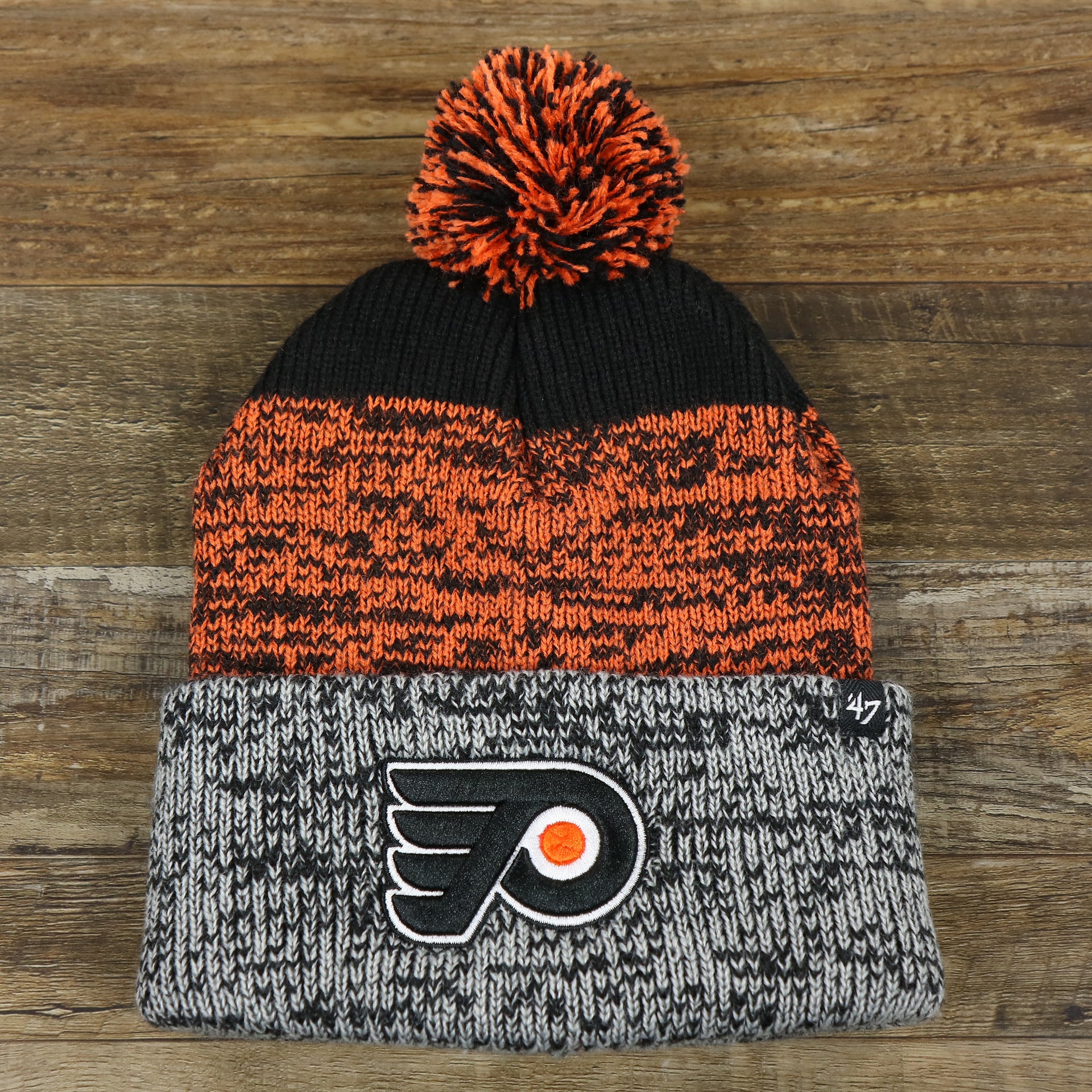 Philadelphia Flyers Static Knit Cuffed Winter Beanie With Pom Pom | Black, Orange, And Gray Beanie