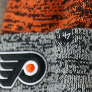 WEARER’S LEFT: The wearer’s left of the Flyers Colorway Winter Beanie With Flyers Logo features a Black 47 Brand Tag.