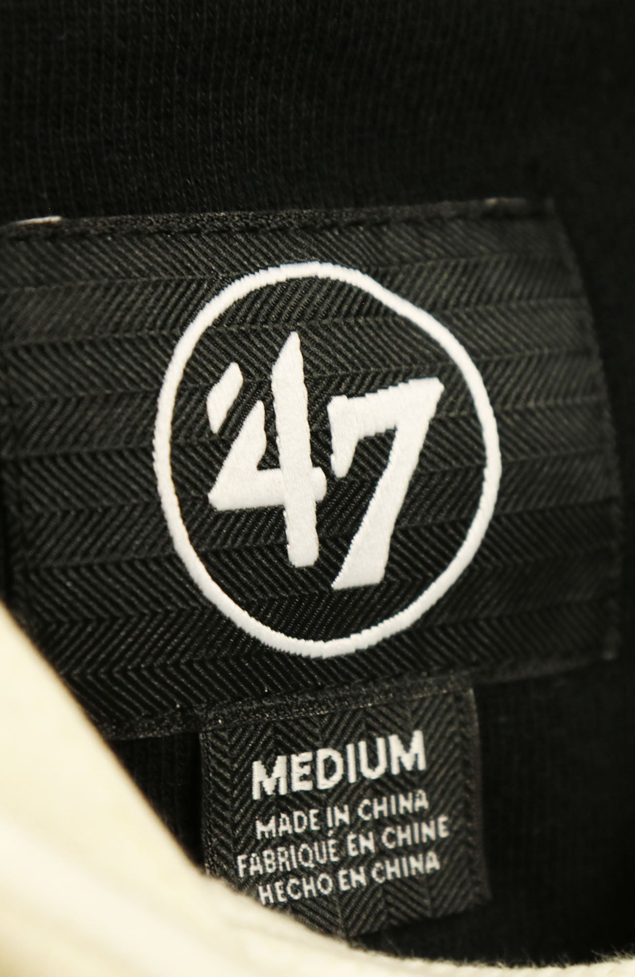 FRONT: On the front of the Philadelphia Flyers Vintage Hockey 47 Lacer Hoodie, the Flyers Classic logo is embroidered in black thread with a white stitching outline.