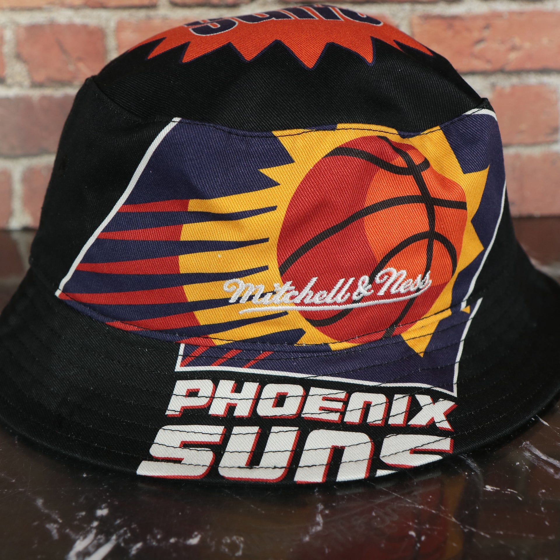 BRIM: The brim of the Phoenix Suns Hardwood Classics Cut Up Bucket Hat | Black is black.