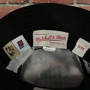BACK: The back of the Phoenix Suns Hardwood Classics Cut Up Bucket Hat | Black features the mitchell and ness logo.