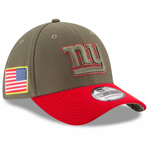 Shop the New York Giants 2017 Salute to Service Stretch Fit Cap from New Era to show your love for the New York Giants while also showing support for the US military and troops. A portion of the Salute to Service collection proceeds are donated directly to veterans and troops in need of assistance. On the front of the New York Giants Salute to Service 2017 Stretch Fit Cap, the New York Giants logo is embroidered in solid green. The New York Giants Salute to Service Stretch Fit Cap has a green crown and a bent brim. On the left side of the New York Giants Salute to Service Stretch Fit Cap is the New Era logo embroidered in white. On the back of the New York Giants Salute to Service Stretch Fit Cap has a veterans ribbon with the NFL shield embroidered into the hat. The right side of the New York Giants Salute to Service stretch fit cap is the USA flag. The under brim of the New York Giants 2017 Salute to Service cap has a digital camo under brim.