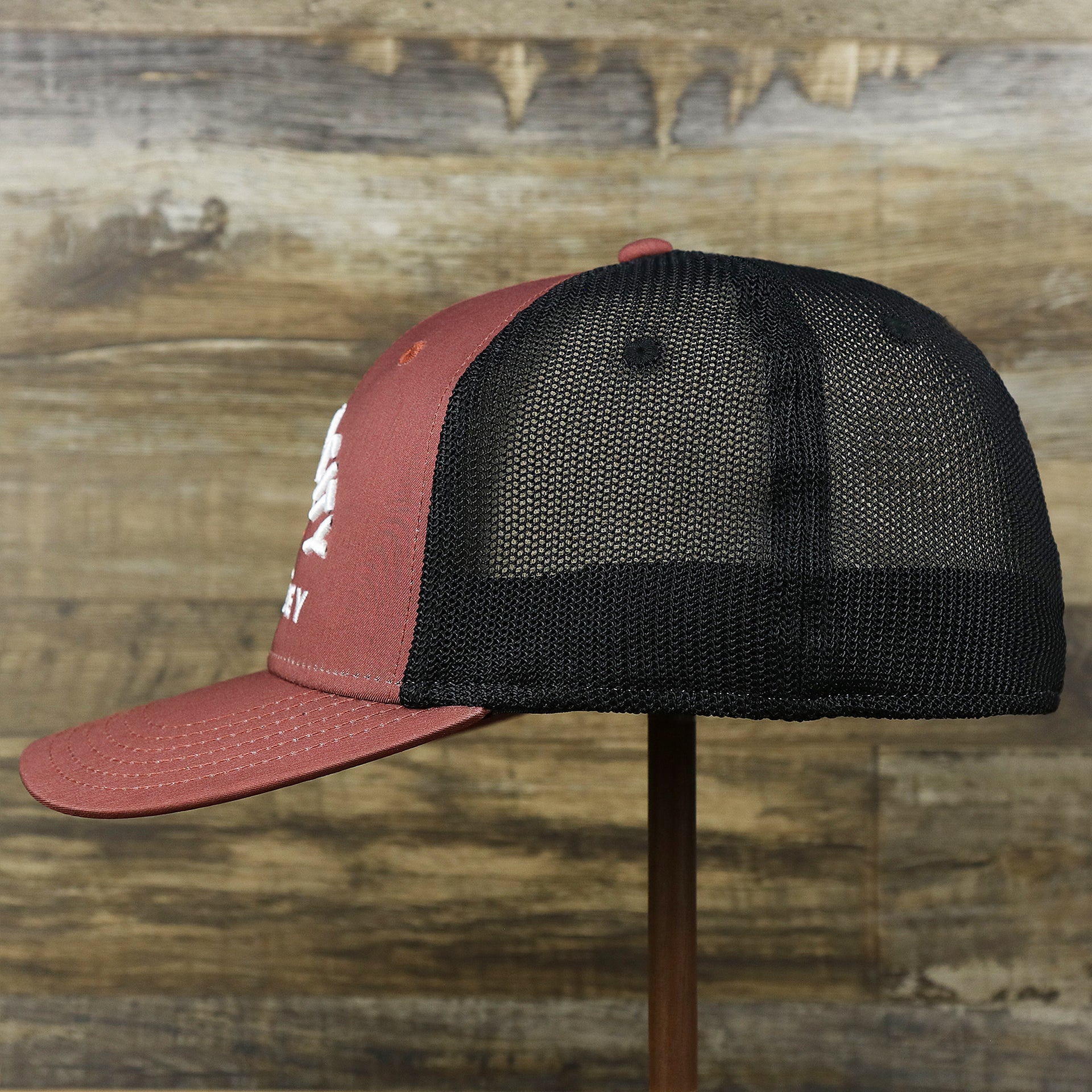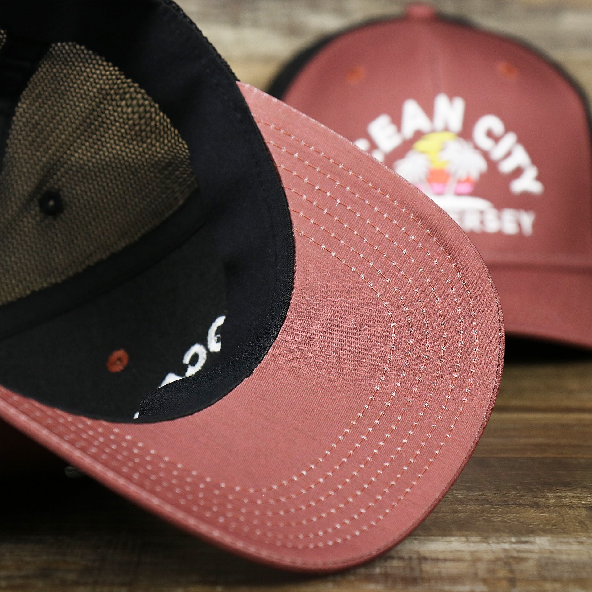 Ocean City Sunset Palm New Jersey Black Mesh Stretch Fit Hat | Burgundy And Black Stretch Fit Hat