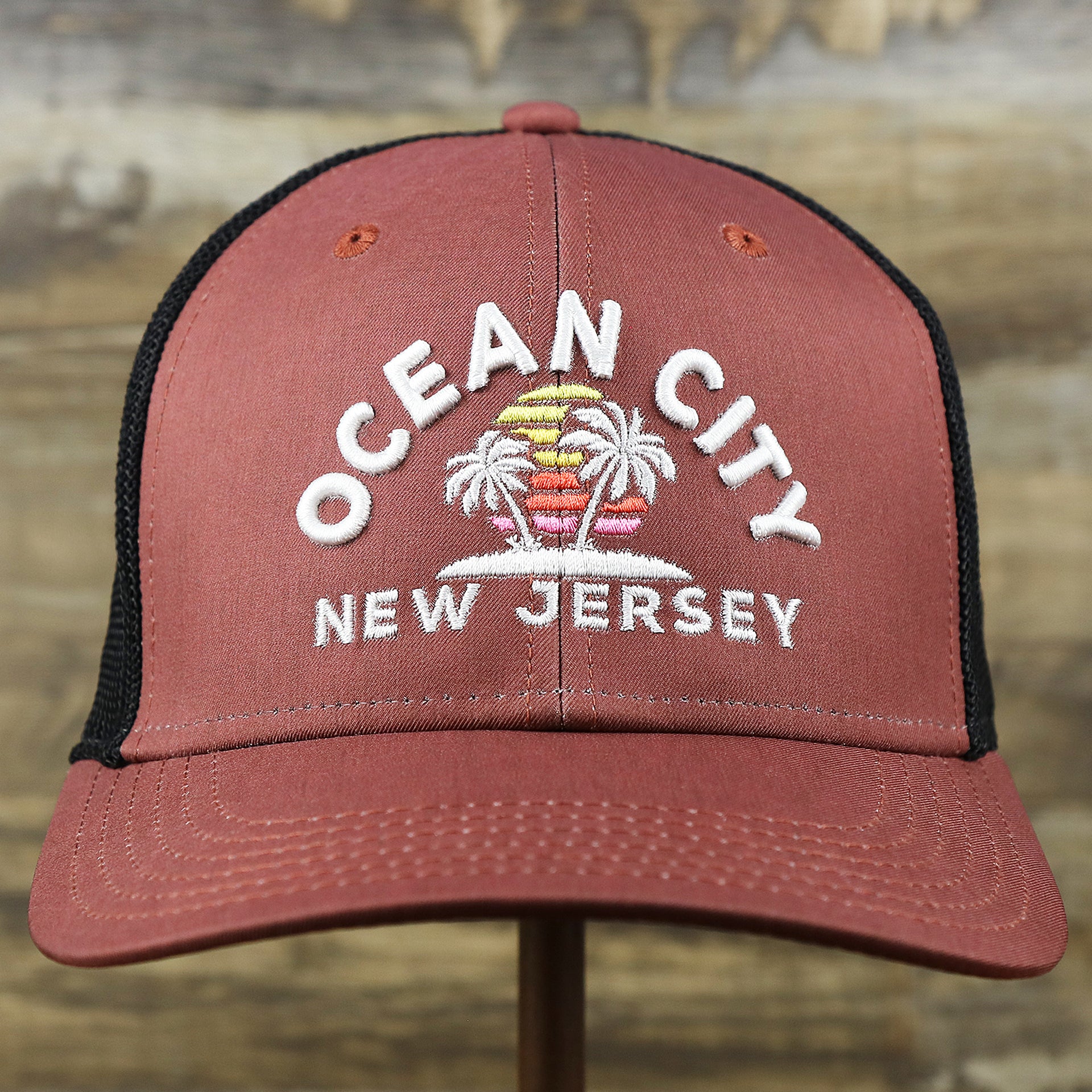 Look great while out on the beach with our Mesh Back Ocean City Palm Tree Sunset Stretch Fit Hat! Our Raised Ocean City Wordmark Palm Tree Sunset Mesh Stretch Fit Hat features the Ocean City New jersey Wordmarks embroidered in White with the Palm Trees in front of a sunset. Our Palm Tree Sunset Logo OCNJ Mesh Stretch Fit Hat features a black mesh back that pairs perfectly with the Burgundy Colorway. Our Mesh Back OCNJ Sunset With Palm Trees Stretch Fit Hat are down below!`