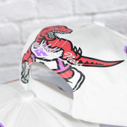 FRONT: The front of the Toronto Raptors Hardwood Classics In Your Face Deadstock Purple bottom | White Snapback Hat features the raptors logo.