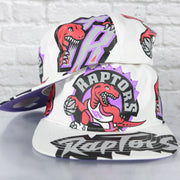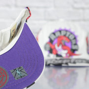 SWEATBAND: The sweatband of the Toronto Raptors Hardwood Classics In Your Face Deadstock Purple bottom | White Snapback Hat is white.